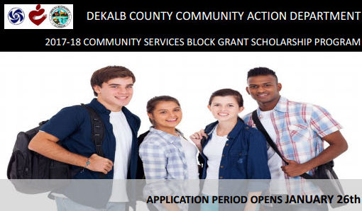 The DeKalb County Community Action Department and the Illinois Department of Commerce and Economic Opportunity announce the 2017‐2018 Community Services Block Grant college scholarship program.