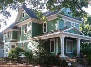 stunning woodwork, original light fixtures, and of course, that unique green paint color