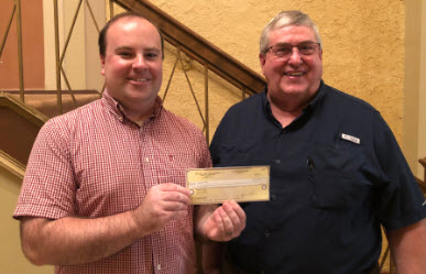 PHOTO: Egyptian Theatre Executive Director Alex Nerad and Preservation of the Egyptian Theatre Board President Dan Schewe hold the check presented to the theatre by the Douglas C. & Lynn M. Roberts Family Foundation.