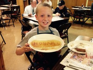 The Menu includes pancakes, sausage, scrambled eggs, biscuits and gravy (homemade), juice, coffee, milk, and fruit. It’s good stuff! One of their specialties are custom-made pancakes! Check it the images above and plan to bring the family this Sunday!