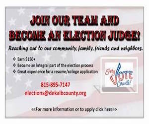 You may also contact Lynne Kunde, the Election Judge Coordinator, at 815-895-7183 or lkunde@dekalbcounty.org.