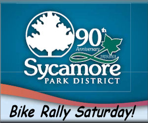 The rally starts at 10:00am, this Saturday, June 8th, 2013 beginning at the Good Tymes Shelter located at Sycamore Park District’s Sports Complex. Prizes will be awarded for the best decorated two-wheelers. Plan on pedal pushing with other members of our community. Visit www.SycamoreParkDistrict.com for more information.