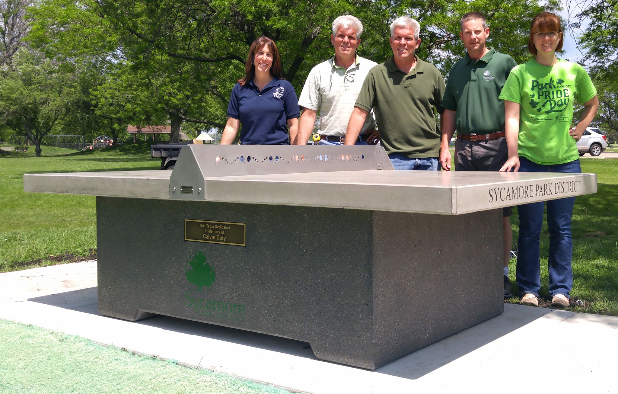 Photo – Wow! Look at this amazing outdoor ping pong table donated to the Park District by Doty and Sons Concrete! The District is overwhelmed by this generous gift and excited to add such a unique amenity to the area near the Good Tymes Shelter. The thoughtfulness and creativity of this gift are sure to make it a beloved feature of the park for many years to come. Thank you, Tom and Sam Doty!! During the Summer Concert Series, concertgoers may check out outdoor ping pong paddles and balls to play while enjoying the music. Try it out at a concert or stop by anytime the park is open for this unique recreational experience!