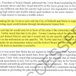 District 428 School Board President Mike Verbic and former Superintendent Paul Bielfuss asked the Town of Cortland to support the referendum (they aren’t supposed to do that). The Town of Cortland told District 428 they wouldn’t support the referendum or sign on to an impact fee agreement unless a grade school was built in Cortland. Verbic told the town trustees that the referendum would be reduced by $15 million, and no school would be built in Cortland, if they didn’t sign on to the impact fee agreement by the deadline.