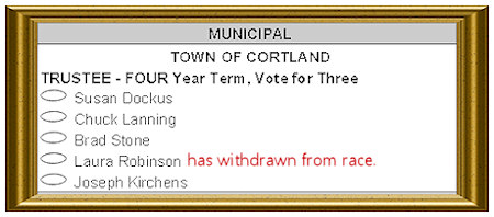 Three of the four candidates seeking the three open seats on the Cortland town board discussed the landfill and a proposed 1 cent sales tax referendum among other items during the League of Women Voters’ candidate forum held at the Cortland Lions Club shelter. The forum was moderated by Kay Shelton attended by about 60 people.