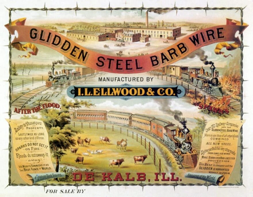 Joseph Glidden was a resident of DeKalb as early as 1850, and our beautiful town was the place where he patented the thing our town is known for – barbed wire.