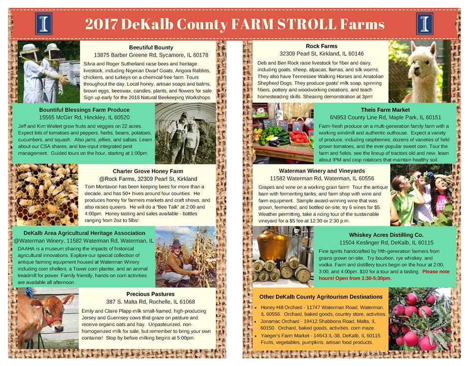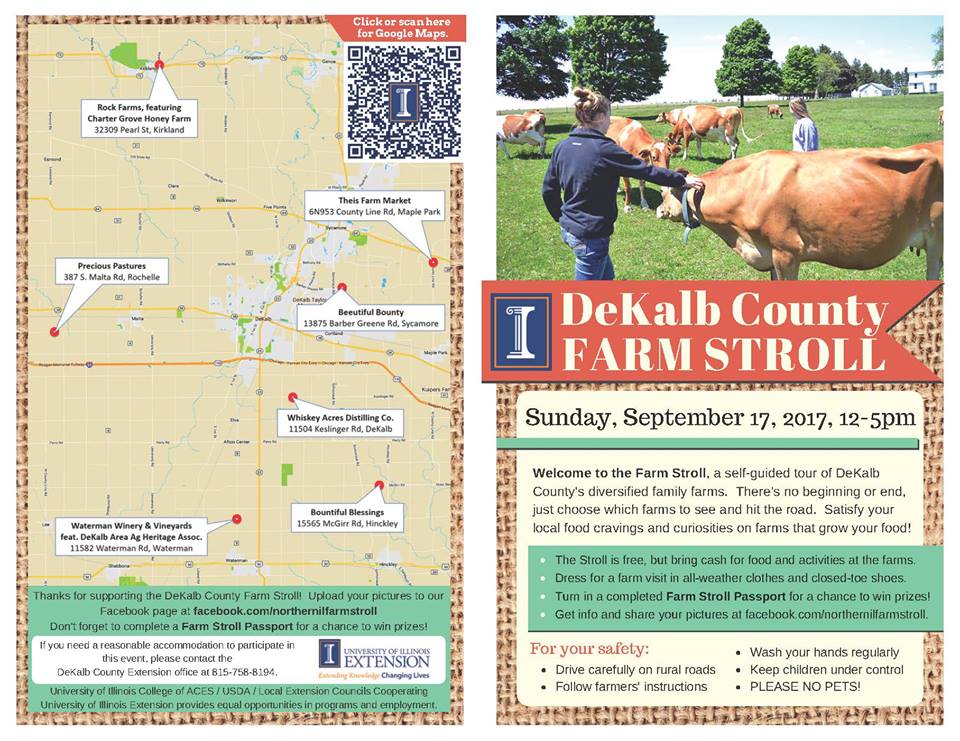 Follow DeKalb County Farm Stroll on the Northern Illinois Farm Stroll Facebook Page or the DeKalb County Farm Stroll Facebook event page for up-to-date information, and more. Or contact University of Illinois Extension at 815-732-2191 with any additional questions. If you need a reasonable accommodation to participate in this program, please contact the local Extension office in Sycamore at 815-758-8194.