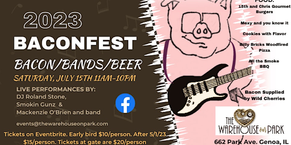 Genoa, IL – Baconfest is back again for 2023, being hosted by The Warehouse on Park at 662 Park Ave. in Genoa, IL. There will be Bands, Beer and of course – BACON!