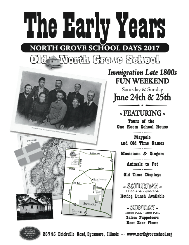 Old North Grove School is located at 26745 Brickville Road in Sycamore, IL. For more information see northgroveschool.org.