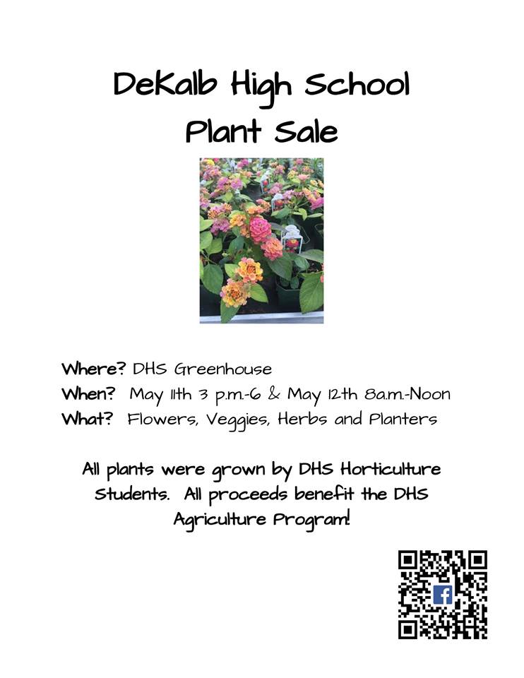 Don’t forget to check out the plant sale while you are there! All plants were grown by DHS Horticulture students. The plant sale is being held on May 11 from 3-6 p.m. and May 12 from 8 a.m. – Noon. The DeKalb High School is located at 501 W. Dresser Rd. in DeKalb.