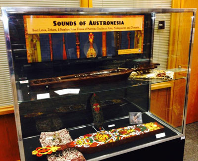 “Sounds of Austronesia,” displayed on the Southeast Asia Collection Display Cases on the fourth floor of the library, aims to highlight early instruments that were prevalent amongst Austronesian speakers.