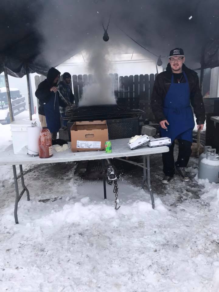 Hard work pays off! This picture is from cooking outside in the snowmageddon, getting ready for the all you can eat dinner for the Pay it Forward House, sponsored by Country Store & Catering and the Sycamore VFW! It was a great night! Thanks to all that attended!!