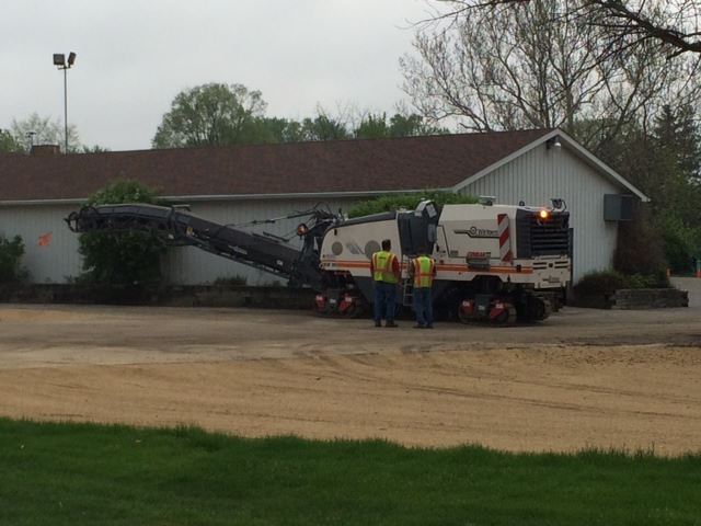 The “milling” of existing asphalt paving at our Club House has begun today. As you know work began a few weeks ago on some asphalt removal, and the addition of some stormwater drainage to help in flood or heavy rain events.