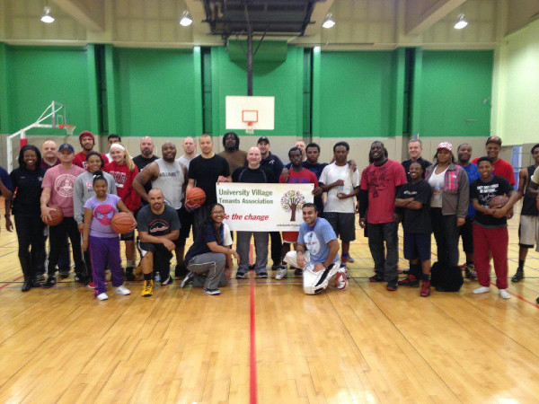 Originally scheduled for Welsh Park’s Russell Road basketball courts, the basketball game was moved to Anderson Hall due to inclement weather. The games featured teams made up from approximately 10 players from the NIU Department of Police and Public Safety, 10 from DeKalb Police and about 20 residents from University Village.