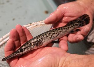 SPRINGFIELD, IL – The Illinois Department of Natural Resources (IDNR) Division of Fisheries this week stocked 1,600 alligator gar (each 12 to 14 inches in length) into four waters in the state as part of an IDNR Alligator Gar Reintroduction Program.