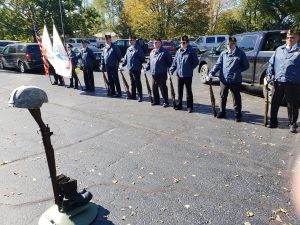 Rob (a US Army veteran) had full military honors with 15 members of the DeKalb American Legion Post 66 Honor Guard in attendance. The Honor Guard fired the traditional 3 volleys, followed by the Post Bugler Michael Embrey playing TAPS. Two US Army members folded the flag from the coffin and presented it to Rob’s widow.