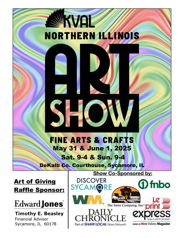Sycamore, IL – The Kishwaukee Valley Art League (KVAL) is proud to present the 54th Annual Northern Illinois Art Show, taking place on Saturday, May 31, and Sunday, June 1, 2025, from 9 a.m. to 4 p.m. each day at the DeKalb County Courthouse in downtown Sycamore.