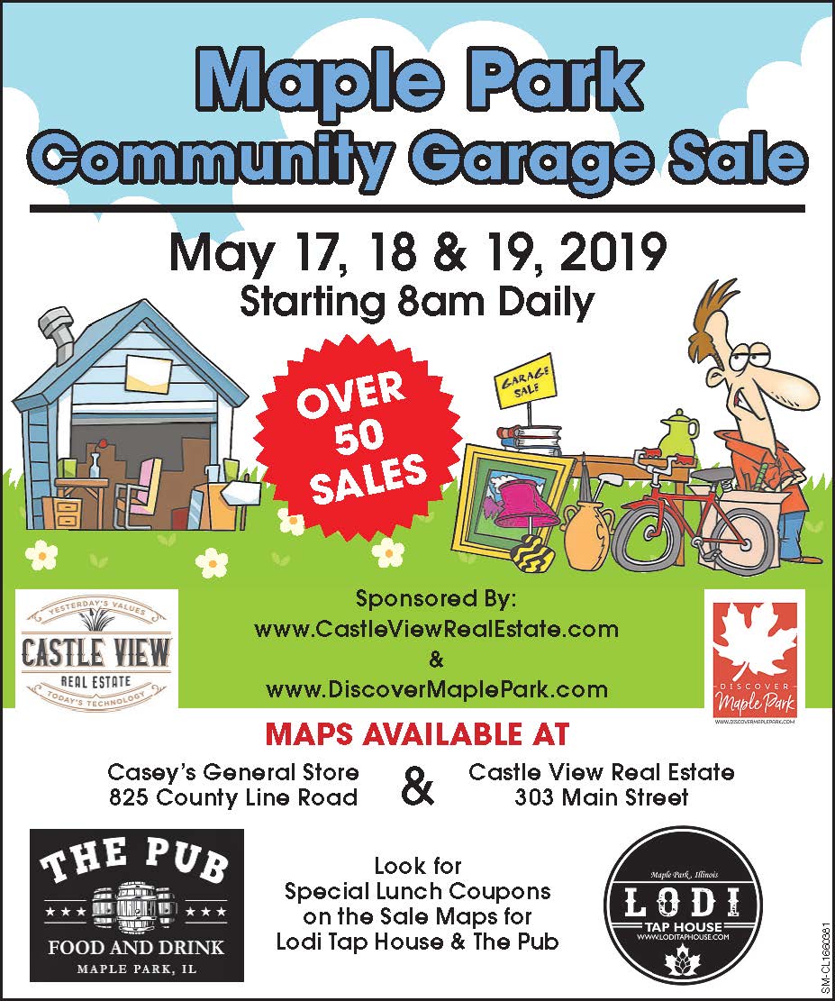 This weekend, travel throughout Maple Park in the hunt for that perfect antique or trinket you have been looking for. Castle View Real Estate is partnering with Lodi Tap House and The Pub of Maple Park to bring you a community-wide garage sale. The sales will be at properties throughout Maple Park. For more information, visit DiscoverMaplePark.com!