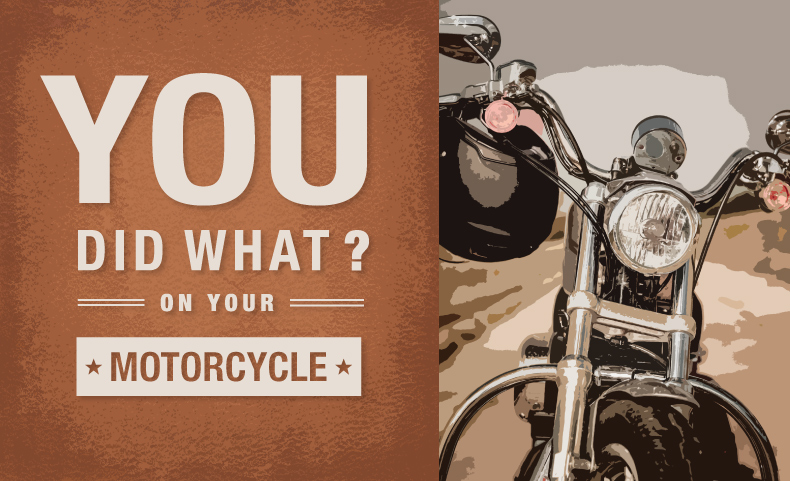 The online survey, conducted in June 2015, asked nearly 200 U.S. motorcycle riders to share their top five pet peeves about both other riders and drivers of four-wheel vehicles, as well as the most common rookie rider mistakes. It also asked riders to fess up to the craziest, weirdest or most reckless thing they’d ever done while riding, or seen others do. Needless to say, that question yielded some quirky results. Top line survey results are summarized below and shown in this infographic.