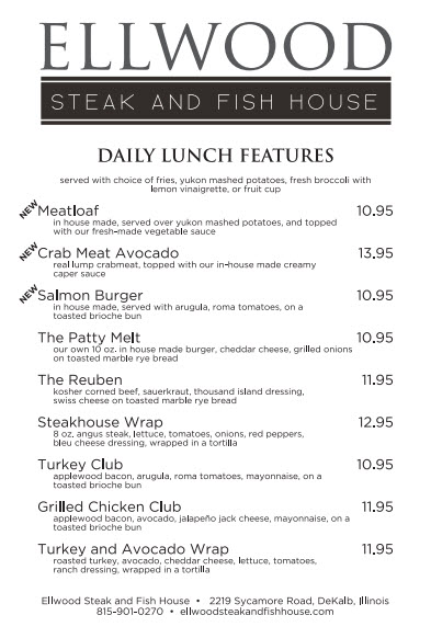 Check out our NEW Ellwood Lunch and Dinner Features Menus and make plans to stop in soon to try them out!