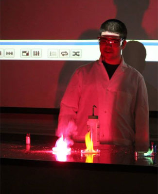 The evening conjures up experiments that feature some exciting parts of chemistry – from rapid phase change manipulations to “magically” timed reaction kinetics to luminescence generation. It will include loud bangs; bright flashes of light, fire and heat; and intermittent periods of low light and/or darkness.