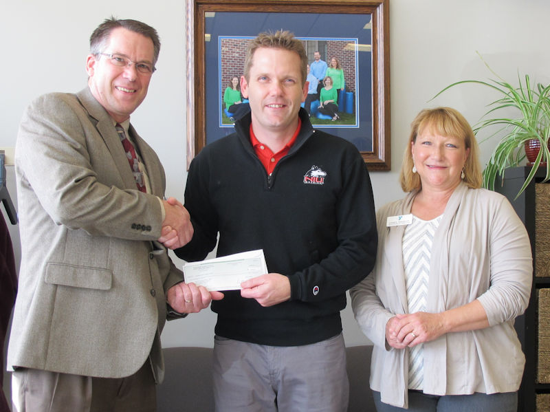 Photo: Kishwaukee Family YMCA CEO Mark Spiegelhoff (left) and Development Director Debbie Madeley (right) Accept a Donation from Northern Rehab’s Aaron Nevdal (center)