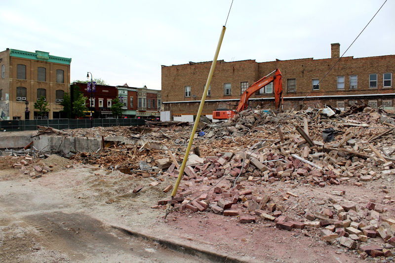 Last week, the building at the corner of First Street and Lincoln Highway, which long housed the bar/music venue Otto’s, was reduced to rubble and cleared away to make space for a new commercial building. As the building came down, local residents gathered on the street to watch and share stories.