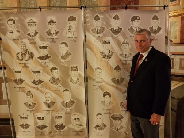 As we approach July 4th and the celebration of our freedoms, I thought it appropriate to point out a display at the capitol this past month. There has been a photo display of those who have given their lives in the defense of our liberty in recent years. I am standing by the image of Brian Slavenas, formerly from Genoa, who was killed in 2003.
