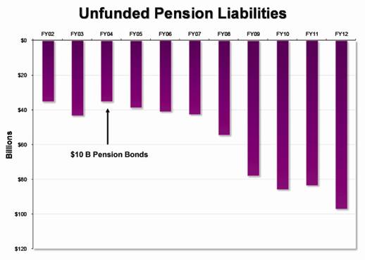 Every year, pension costs take more and more of the Illinois budget. In 2008, pensions consumed six percent of the state budget. When the next fiscal year starts in July 2013, pensions will consume more than 16 percent of the budget. The pension liability grows by an unbelievable $17 million per day.