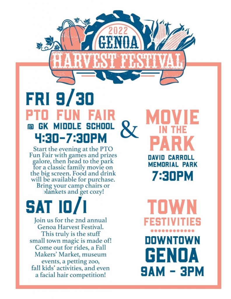 GENOA – Downtown Genoa will welcome the community to its second annual Harvest Festival set to run Friday through Saturday.