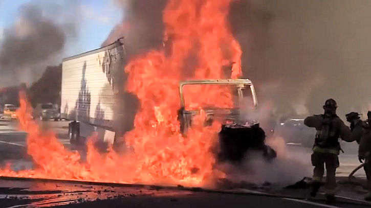 Fire Department units were dispatched to Interstate 88 for a report of a semi tractor-trailer on fire on Tuesday, May 1st at approximately 1:44pm. On arrival, units found a semi tractor-trailer fully involved in a fire. The semi tractor-trailer was carrying plastic and glass items, in addition there was no hazardous materials on this load. The semi fire then extended to the brush and grass on the North side of I-88.