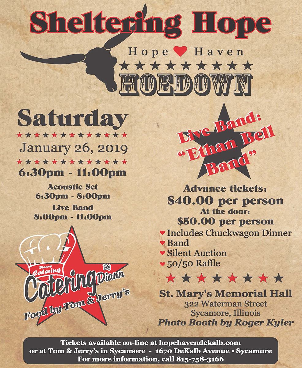 Tickets online at hopehavendekalb.com or at Tom & Jerry’s in Sycamore.
