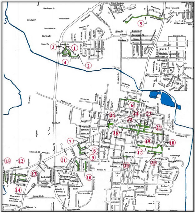 | 25 | TURNER PLACE | SOMONAUK STREET TO TOWNSEND STREET |