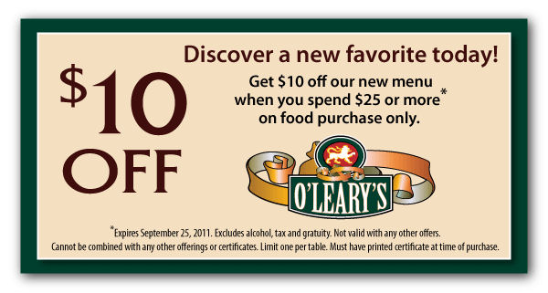New Menu at O’Learys!