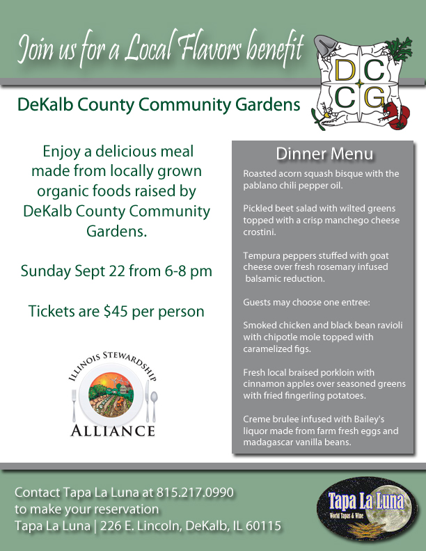 DeKalb County Community Gardens Harvest Garden Tour and Local Flavors Dinner this weekend