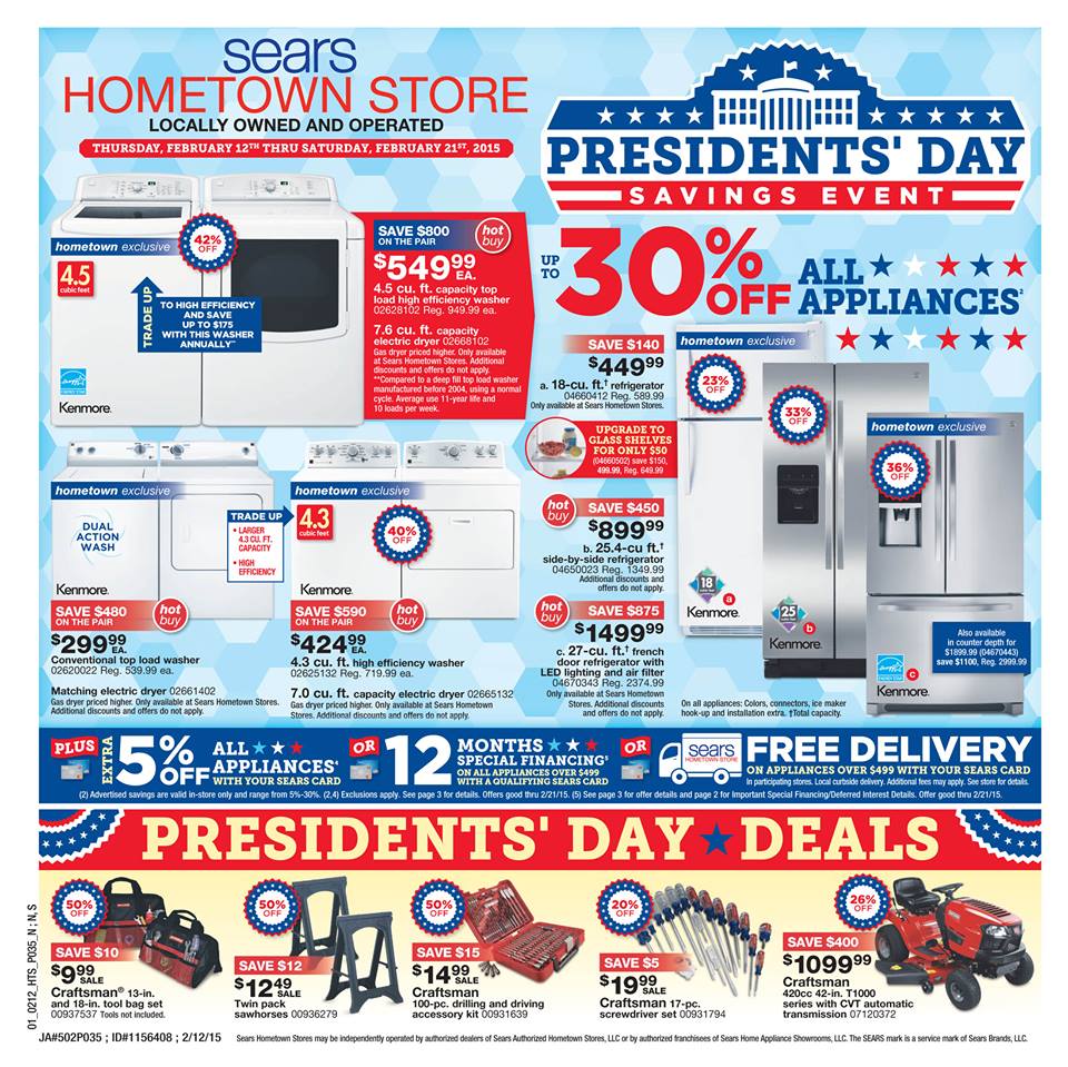 Take a look at some of the great deals in our *8-PAGE* Presidents’ Day Sale circular; valid February 12-21, 2015, at your Sears Hometown Store in DeKalb!