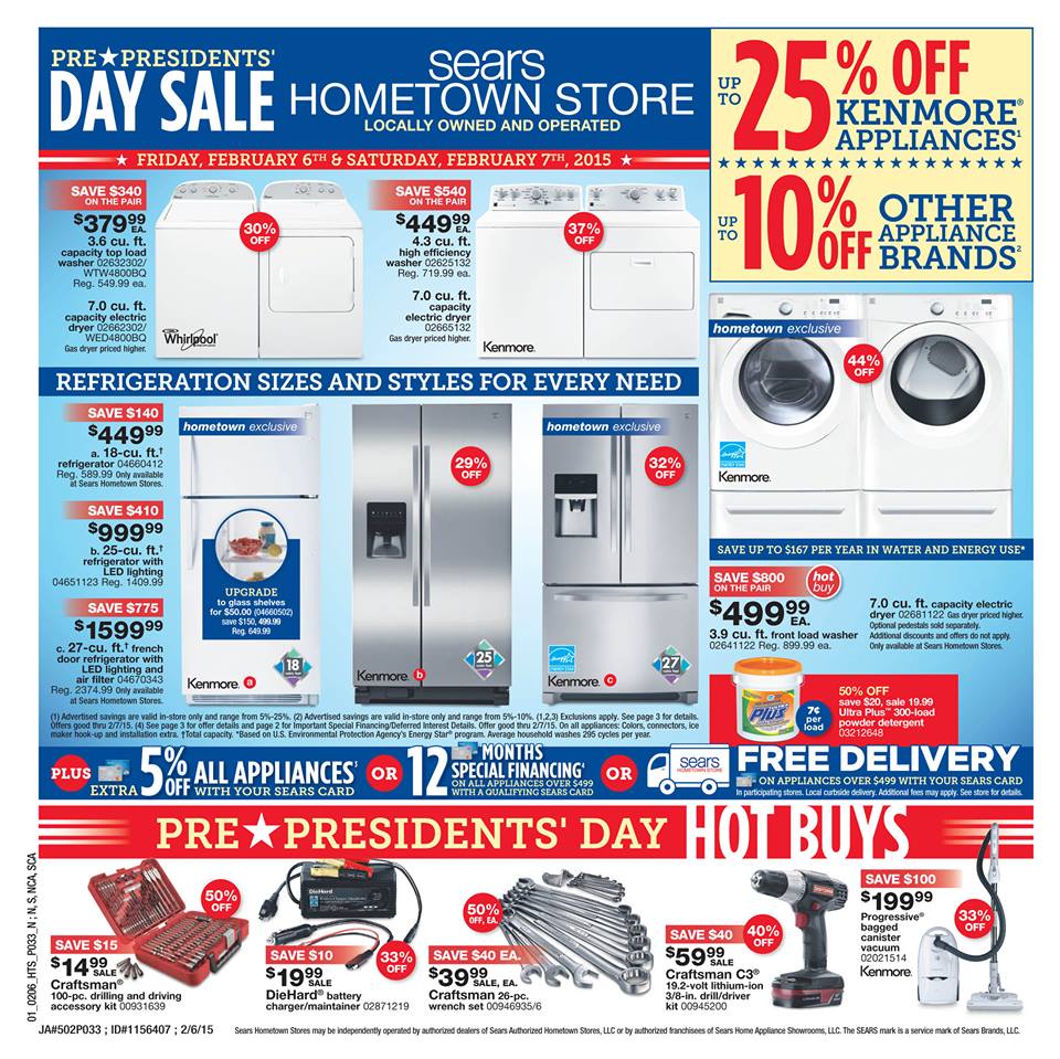 Take a look at some of the great deals in our Presidents’ Day Preview Event circular; valid February 6-7, 2015, at your Sears Hometown Store in DeKalb!