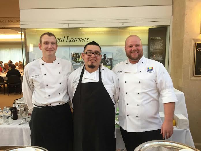 A team of chefs, from Kishwaukee Hospital’s Food & Nutrition department, is proud to have placed first, receiving the People’s Choice Award and placed third in the Professional Chef category (judged by a local food critic) in this year’s 50 Men Who Cook competition. Congratulations to the team: Jeff Lawson, executive chef (right), Eric Griffiths, chef (left), and Gabe Ramirez, chef (middle).