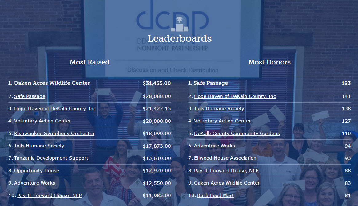 Thank you to everyone who expressed their generosity by donating through Give DeKalb County on May 4. Give DeKalb County is a 24-hour fundraising event coordinated by the DeKalb County Nonprofit Partnership—a program of the DeKalb County Community Foundation.
