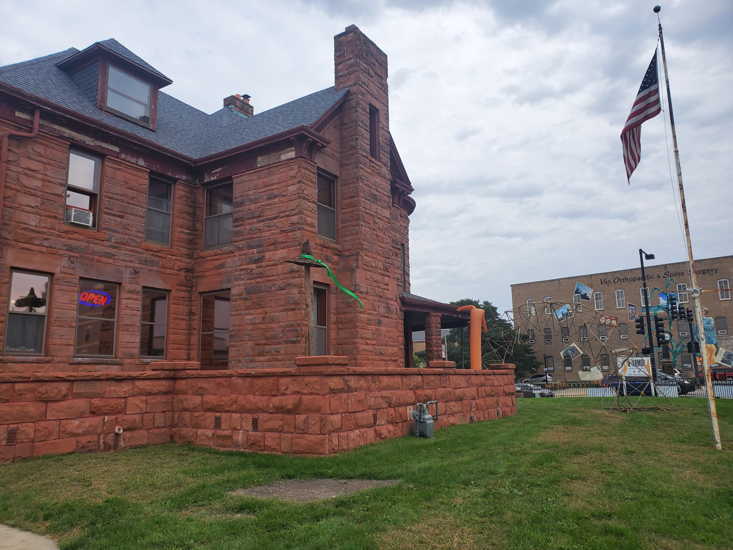 Hello and welcome to the Mayo Mansion. The building that started in 1897 has been the home of Dr Mayor, The Elks, Hearing Help, Koolidge for Congress and ARMOR over the years. This was also the location of the first log cabin that started what is now DeKalb. The building has needed a lot of maintenance from the years. Since ARMOR has moved in both roofs have been replaced, walls repaired, much of the stone work has been rebuilt but the building has a long way to go.