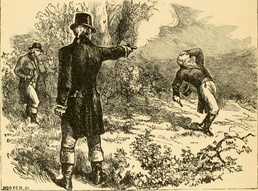 Bennett was outraged and sought revenge. He complained loudly to other tavern goers. Two men suggested a duel, a sham duel, meaning both men would load their guns only with powder and no bullet. They said it would enliven the sleepy village of less than 300 residents and no harm would come of it. They explained the plan to Stuart, and he agreed.