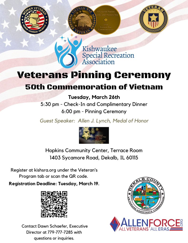 DeKAlb, IL: Tomorrow in DeKalb (IL) (March 26), the city will welcome a ‘Medal of Honor‘ winner to host a special event to honor local veterans from the DeKalb area. US Army Sergeant (Retired) and Medal of Honor recipient and Vietnam veteran Allen Lynch will be a keynote speaker and will present those Veterans in attendance a special ‘pin’ to acknowledge their devotion, dedication, and commitment to serve this country.