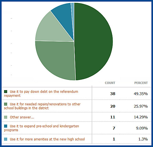 And the survey says most people would prefer all or part of the District 428 $21 million grant be used to reduce the debt from the $110 million referendum loan. Even my 2nd favorite local retired professor, Herb Rubin, thinks some of it should go towards debt.